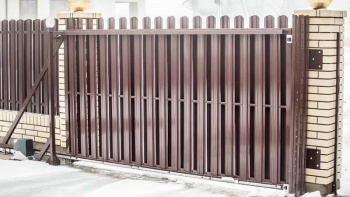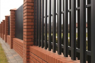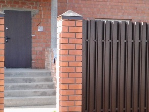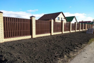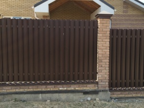 Забор из евроштакетника с кирпичными столбами